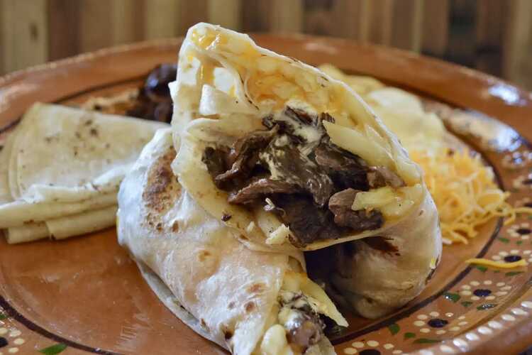 The California burrito consists of carne asada cheddar cheese french fries sour cream and a flour tortilla. Open now 10AM - 9PM.